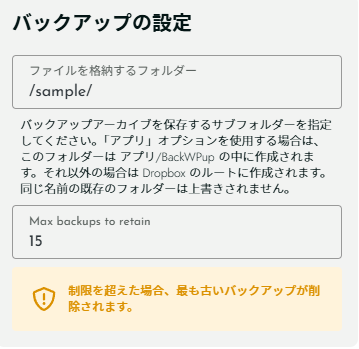 ▼ BackWPup の画面では「Dropbox」が緑色になっています