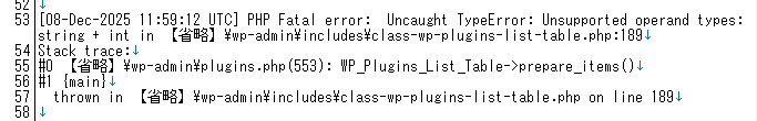 [08-Dec-2025 11:59:12 UTC] PHP Fatal error: Uncaught TypeError: Unsupported operand types: string + int in 【省略】\wp-admin\includes\class-wp-plugins-list-table.php:189
